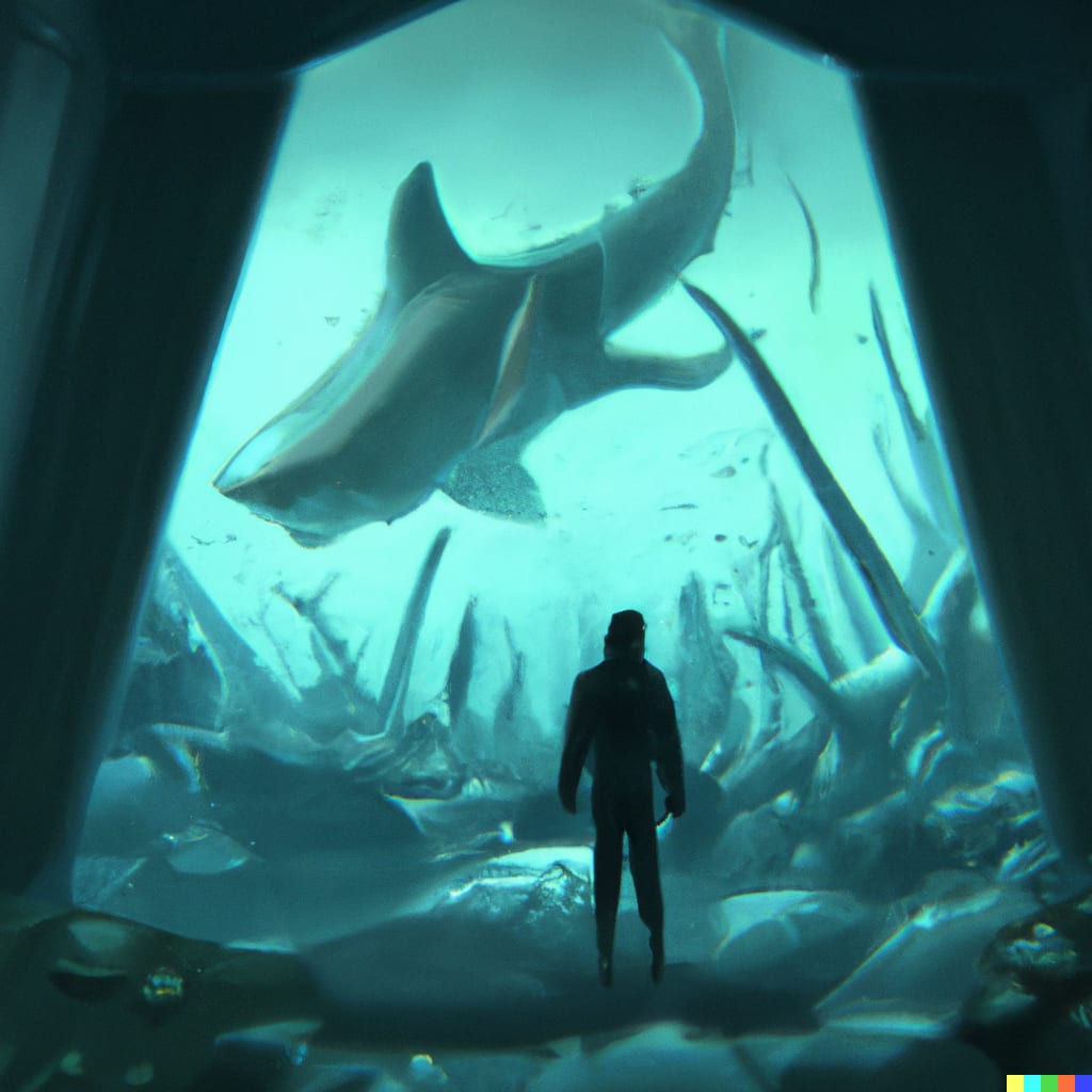 Thousands, if not millions, of sea creatures swarmed in droves. A pod of dolphins shot by, colorful fish darted to and fro, and, right before their eyes, a shark clamped its razor sharp teeth into its innocent prey, creating a red cloud that quickly dissipated. Small scuba-drones zig-zagged through the water, constantly testing the pH balance and salinity levels, transmitting data to the aquarium’s central database.