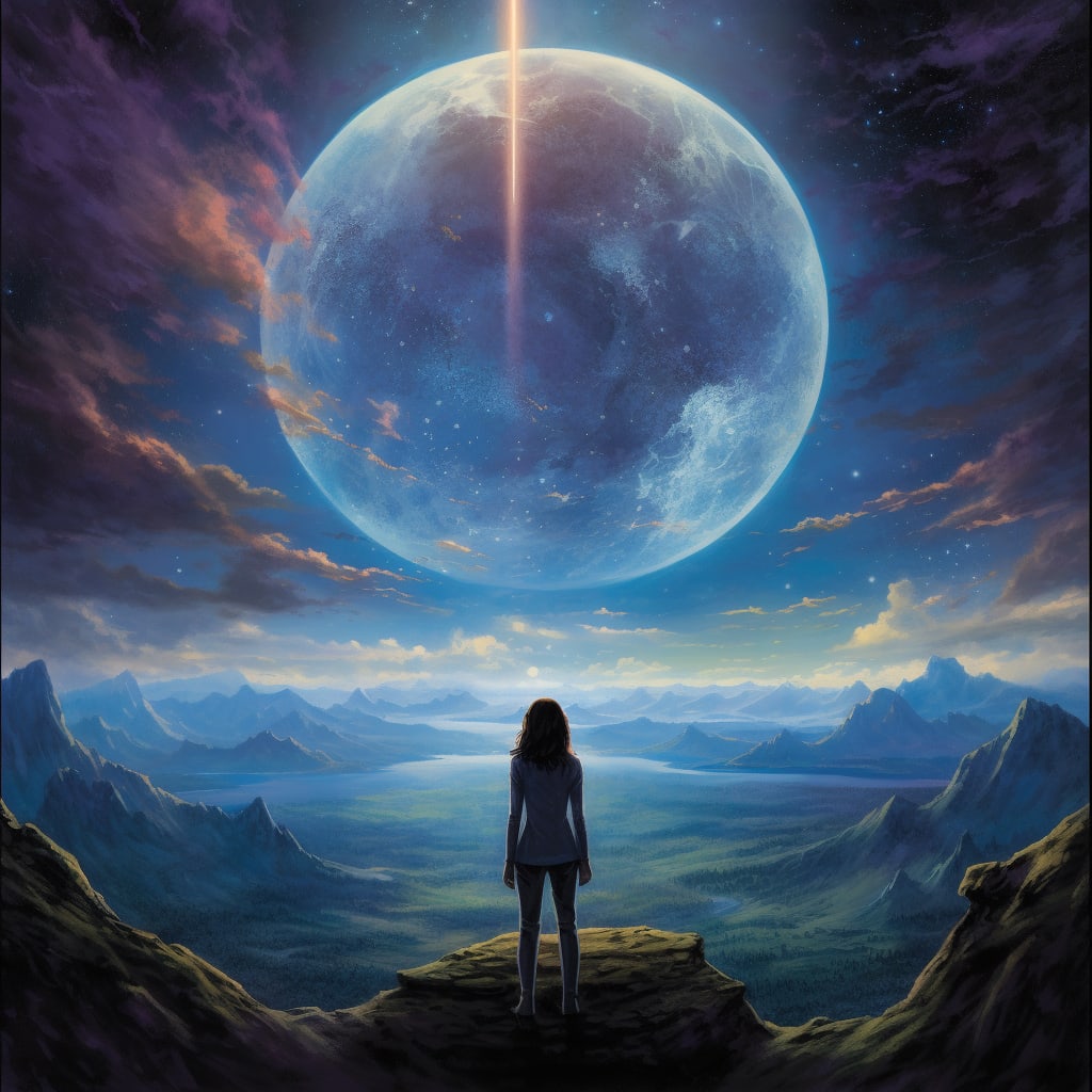 In the presence of the masterpiece, Luna was able to connect to her celestial roots and still cherish the earthly wonders she had grown to love. The painting had served its purpose - a portal between her home in the cosmos and the Earth, allowing her to exist in both planes without losing her starlight.