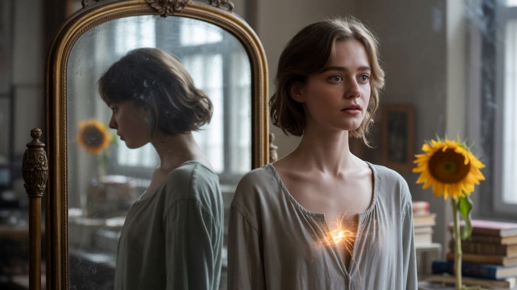 The mirror has never changed. It still shows my face — now old, with lines that weren't there before, hair that sometimes looks tired, eyes that are still sad. But I don't give it any more power. Because I know it can't show me the real me.