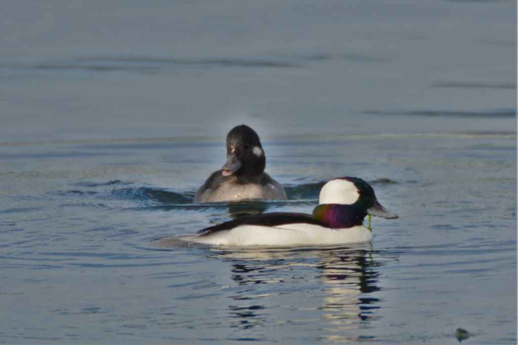 The morning was calm and the water was like a mill pond. A short distance from the shore, a large flock of assorted waterfowl sat happily on the water: buffleheads, harlequin ducks, goldeneyes and a random surf scoter. Then, one by one, heads plunged under and feathery butts popped up briefly before submerging. About a half minute later, one by one, they bobbed up above the surface. And so it went on. Most relaxing to watch. Does wonders for blood pressure,