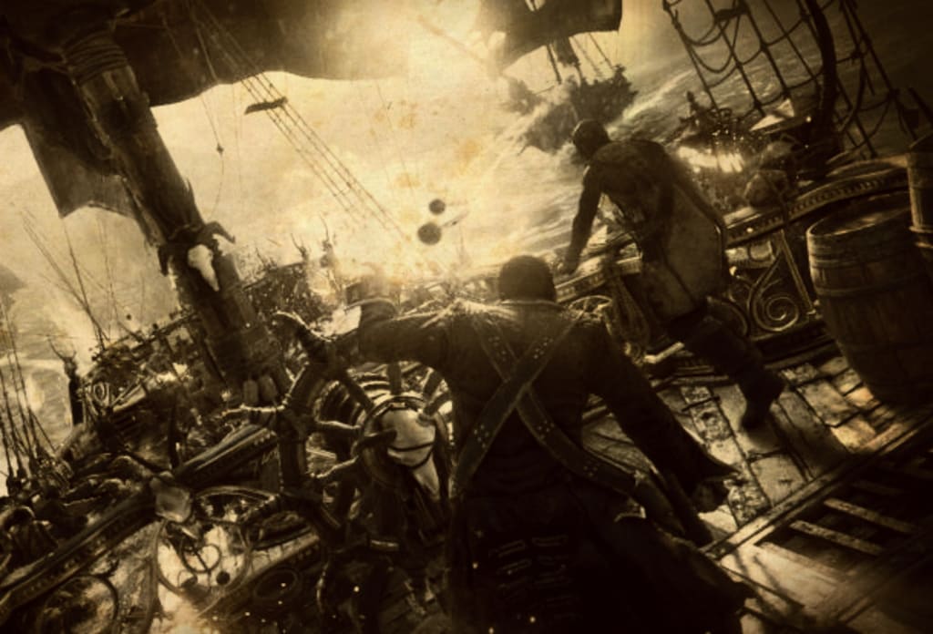Black Tom continued to smile as his crew avoided each cannonball. When they were positioned against the portside of the Spanish ship, he shouted, “Fire!” Once again they had the upper hand, and entire portions of the side of the galleon were sent flying into the sea.