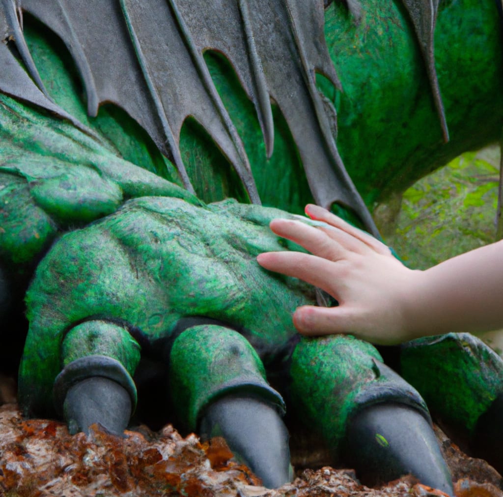 Realizing she would just keep chasing him, Dag lowered himself, resting his belly on the ground, and put his front legs out. The girl reached him and placed a tiny hand on one of his claws. She smiled at him.