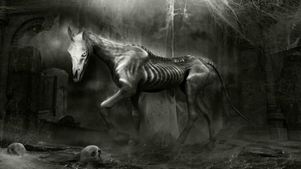 The kelpie pulls back and grins at me for it is no longer a horse. It begins to morph from a muzzle filled with teeth to a flattened skull with no skin over top. Its body began to change as well, clearly the stuff of nightmare for its head wasn’t enough. Its torso and back became longer until it was long and spindly, also just bone with no skin the arms and legs elongated into tips until the whole body was about nine feet in height and the hands and feet were just points that split into two pinchers. The color of the bone of its body was silvery white much like the horse’s coat. I couldn't help it, but to my horror a warmth spread between my legs. The water surrounding didn't betray me, due to how dark it was with my blood. Pretty sure either my new level of fear or maybe it's evilness could scent the urine, but its new flattened head lifted and laughed. It was a gurgle sound and it traveled very oddly through the water. “Ah Suma you are scared of me.. Yessss you should be afraid.”