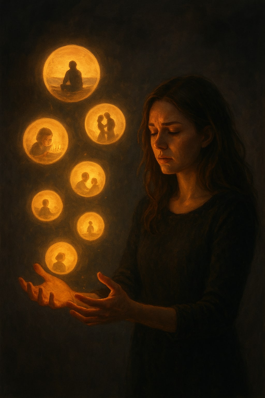 Eventually, the woman has borrowed so many years that her original time is almost forgotten. She has lived far longer than expected, carrying hundreds of strangers’ memories with her.