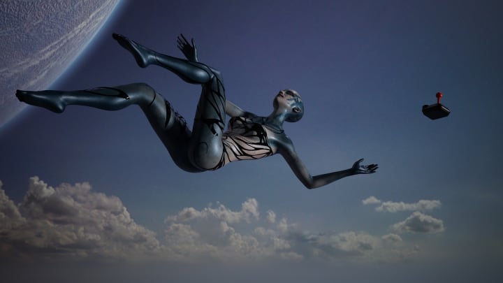 Phoenix and Amy shrieked as one, but their horrified voices were swept away from Dylan’s hearing as the galactic cruiser spiralled to distant heights, leaving his free-falling frame alone with the wind. Accelerating from the spacecraft’s ponderous descent, Dylan perceived in mere seconds the long shape of the Henry Martin coming into view before his eyes, and heard the faint sounds of battle. He aimed himself at the fray.
