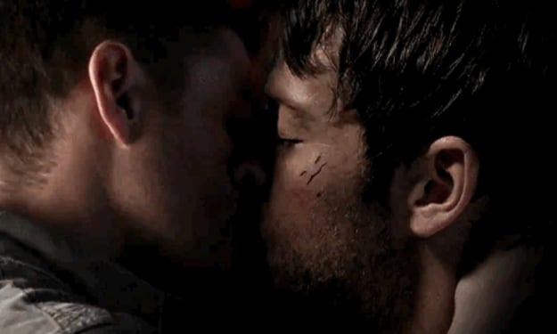 Cas lets that hurt the way it needs to and turns back around and looks at Dean, whose face looks both hurt and hopeful. Cas gives him the smallest smile he can manage and slowly leans forward until he’s speaking into Dean’s lips so Dean knows that it’s not about proximity but about the choice.