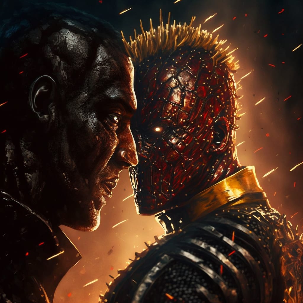 In the distance, Candyman stood with his hook hand clenched tightly, ready for a fight. The two had faced off before, but this time it felt different. The stakes were higher, the air was thicker with tension.