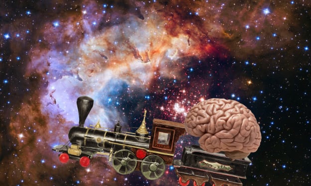 I groaned as my beaten body was thrown against my restraints as the train exited interdimensional travel into a solar system with two visible planets and a brilliant blue neutron star far distant in the expanse. The collapsing supergiant spread its golden tendrils across the system like some mighty cosmic octopod, its acceleration disc a halo spinning at speeds unfathomable to any mortal mind, though it looked to spin gently thousands of miles off as we were.