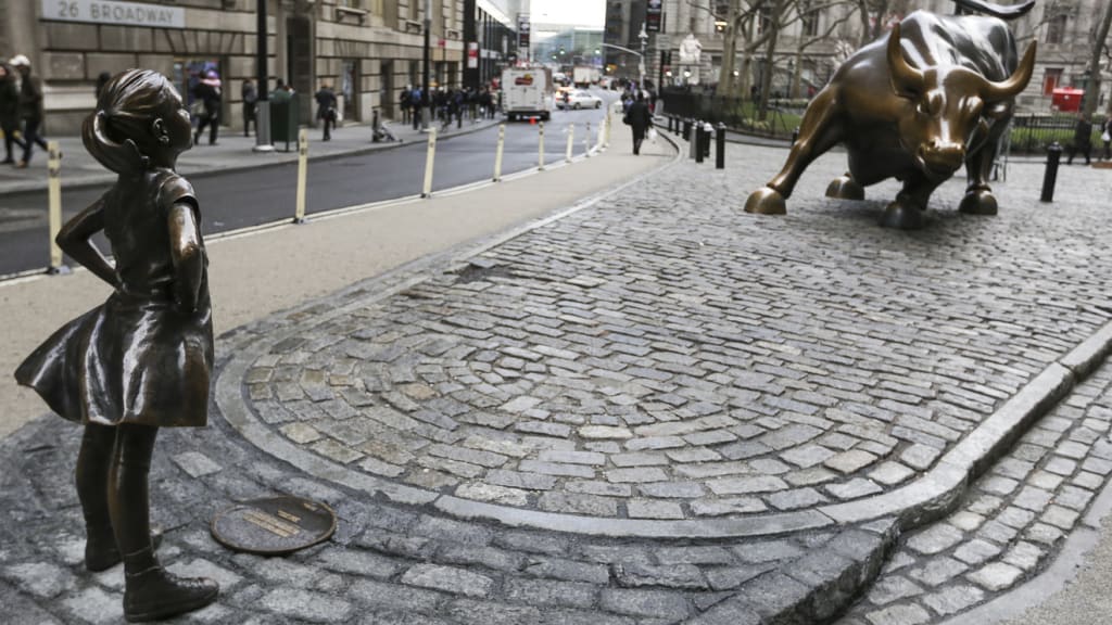 “Hmmm, that’s not what my creator said,” the Girl responded, still cocking up her head. “I was designed to show that I have no fear of you, the Wall Street Bull, who doesn’t like girls.”