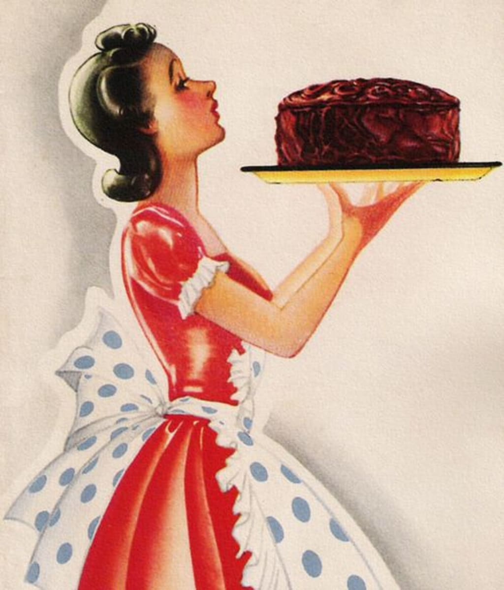 I excused your actions when I caught you with my bridesmaid on our wedding night, gave you the benefit of the doubt because the champagne had been flowing so freely. I continued to excuse your actions because that is what a perfect 1950's housewife does. She supports her husband and creates a loving environment for him to come home to at the end of the day. I am startled out of that bitter thought to the sound of the timer ringing. I complete a toothpick test to make sure it is ready and pull it out of the hot oven.