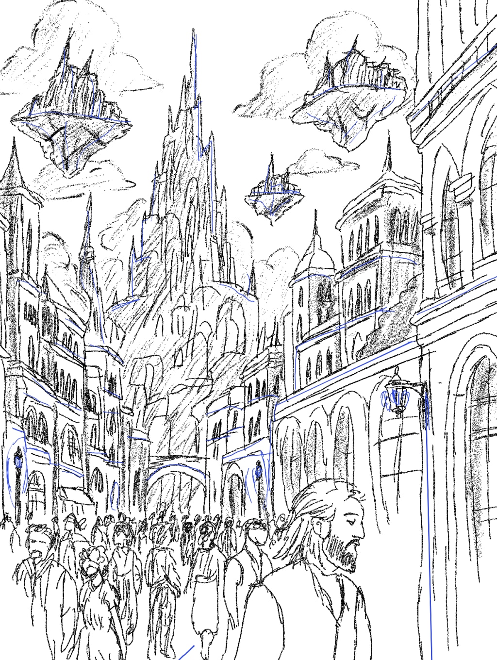 Though the train was quite empty, the street outside was bustling. It is almost like seeing my entire town times—I don’t know—a lot, walking the street all at once. But that paled in comparison to the towering buildings that almost get lost in the clouds. Some parts of the city even appear to be on floating islands! Floating islands! It mesmerized me. The streets were alight, not just with the sun, but with glowing blue lines traveling along the building walls and the street edge. “Are those sapphire lines?” I almost yell in excitement as I walk up to closest building. Stretching my arm out I place a finger on one of the blue lines. It sent a gentle buzz of energy through me—they were sapphire lines! Following the line with my eyes, I see it stopping at every light on the walls and street. “It is magic powered!” I exclaim. Realizing how loud my words were, I pull my body into my core shrinking as I dart my eyes around the crowded street. But not many people seem to have noticed—a few turned their eyes, but most just kept on their way. Looking back over at my finger only a fraction of a fraction of any inch away from the sapphire line itself. I can feel the wave and flow of it’s energy. If I just quiet myself I should be able to. . . ‘No Ravly, you came here to attend the academy. You will learn how to do this there.’ I remind myself bringing my back to the task at hand, Locating the Dalten City School of High Magic.