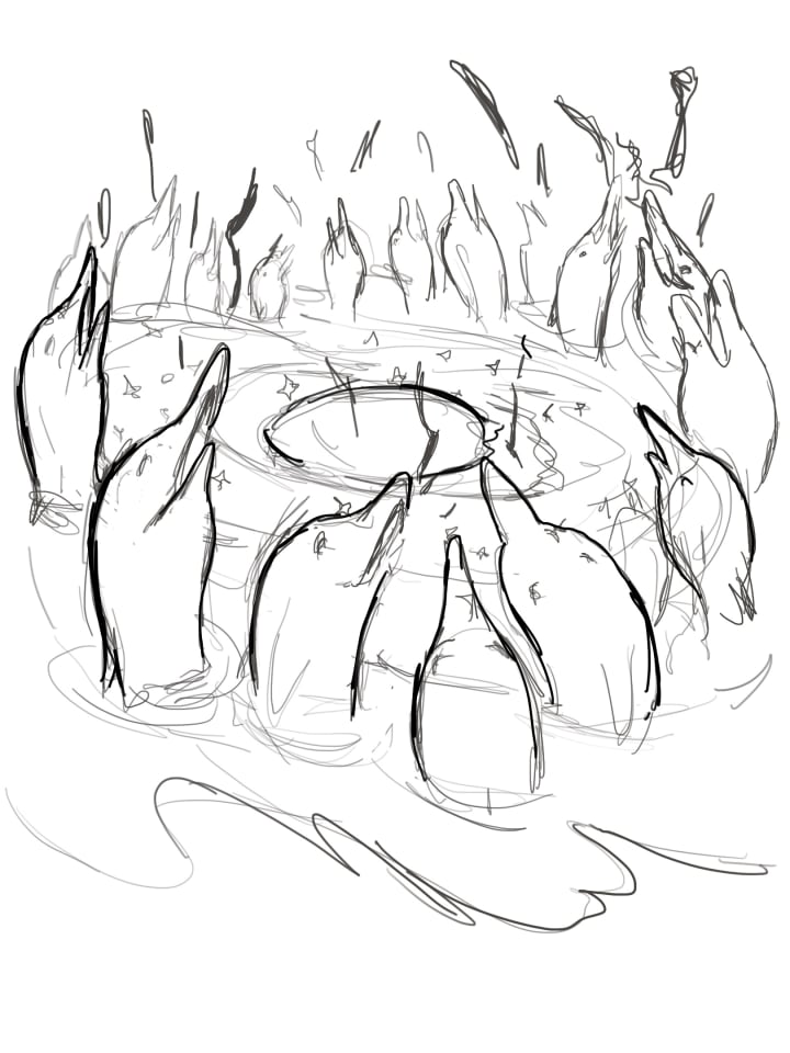 Four abysmal figures were hanging out in the remains of human civilization. One of them was pacing back and forth relentlessly, two of them were sitting calmly staring into their beautiful disasters and another couldn’t help but watch the one that kept pacing.