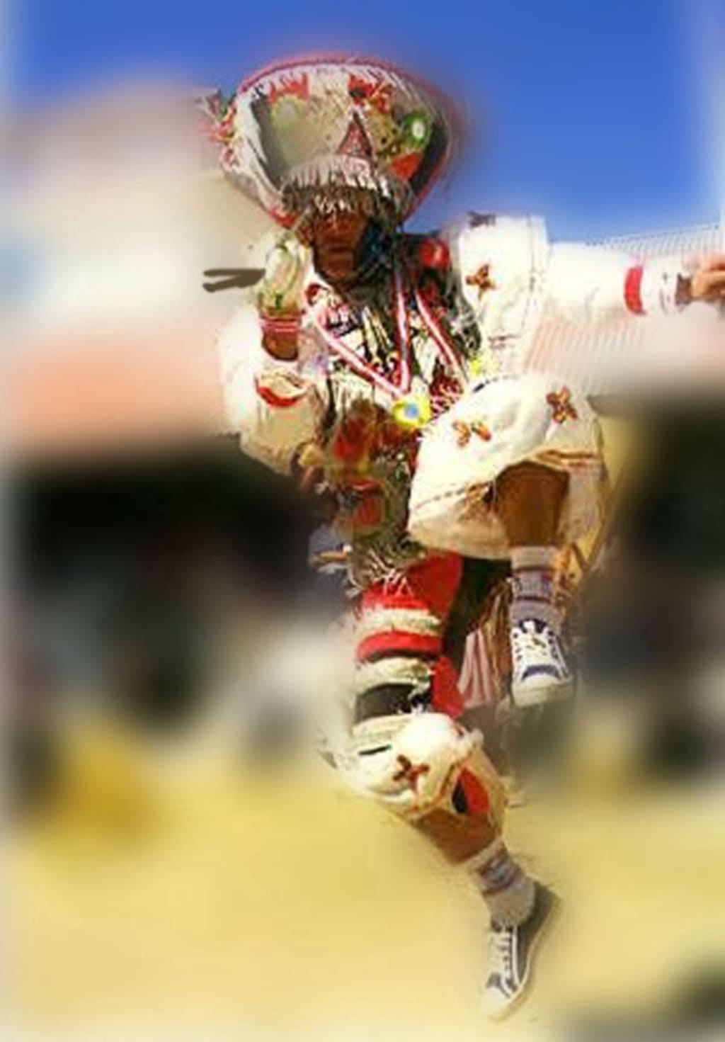 Dancing with Scissors, it said, explaining that it was a ritual enacted since the 1500s in reaction to the takeover of the Spanish Conquistadors. The Scissors Dance survived as a kind of Inca resistance movement. Dancers believe old Inca gods take over their bodies and drive them to perform this wild dance signaling their return.
