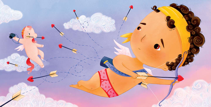 First, she needed to write the story. But what to write about? There were so many choices: dragons, spaceships, fairies, and more! Her head spun with too many options. Then she decided on love. Because love is love, and Danette was in love with love! Who wasn’t?! Before she knew it, the words spilled onto the page. Just over 600 words, a perfect amount for a picture book. In her story, poor Cupid wasn’t able to aim on Valentine’s Day. And accidentally made all sorts of silly love connections. But not to worry! Danette believed in happy endings.