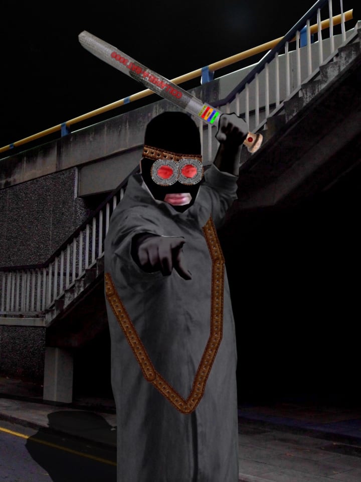 The acid rain has stopped falling – you never know how much time you have between downpours. I put on my tech gear, comprising of a pair of Cyber-Eye 3000 goggles, Home-pute Gauntlet and the latest Audi-pod to look the part. I’m also holding my Collapse-A-Bat 360, which I can conceal in my hand until the time comes that I need to eject the density baton. Most are sold with two densities; LIGHT or MEDIUM. Mine was bought on the black-market; it’s a police-trooper baton that comes with two more settings; HARD, to break minor bones; or LETHAL, to go in for the kill. I never adjust my setting from LETHAL.