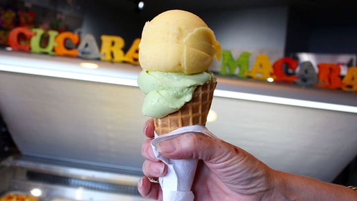 "One scoop of strawberry and one scoop of avocado, please," he said cheerfully as his grin widened in anticipation.