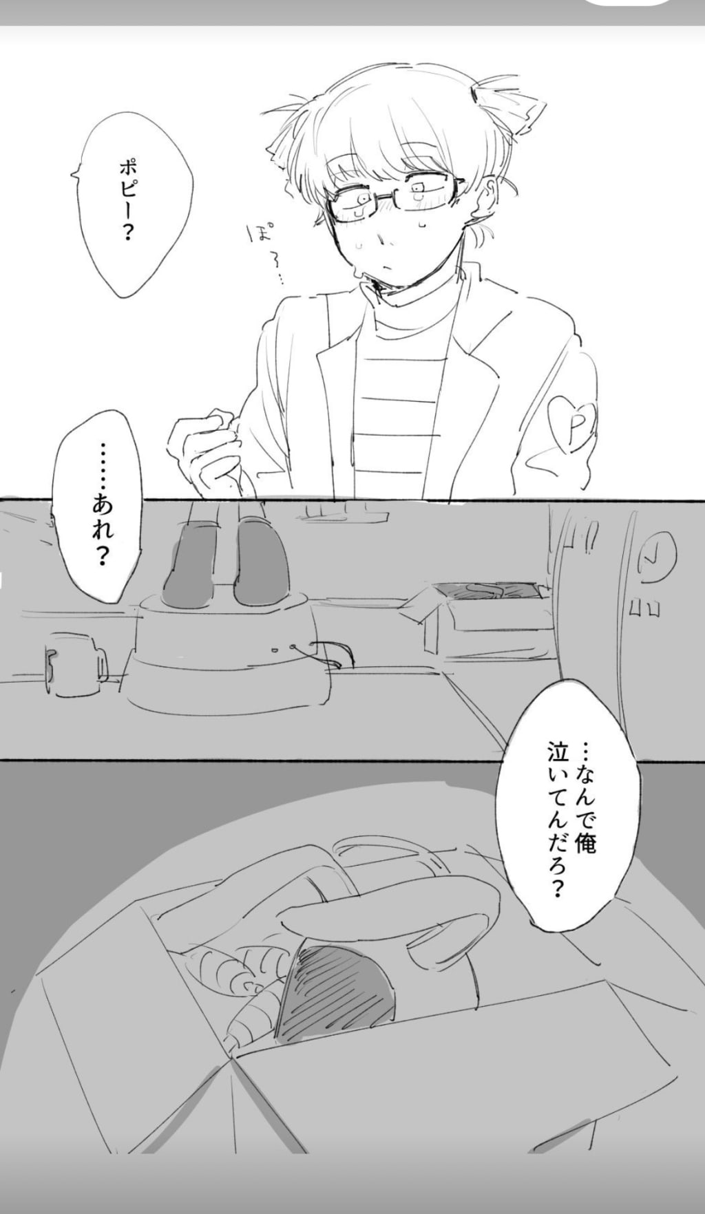 Popee saw his boyfriend starting to shake and cry in a nervous and anxiety driven manner, so he took the baby and had Kedamono sit down.
