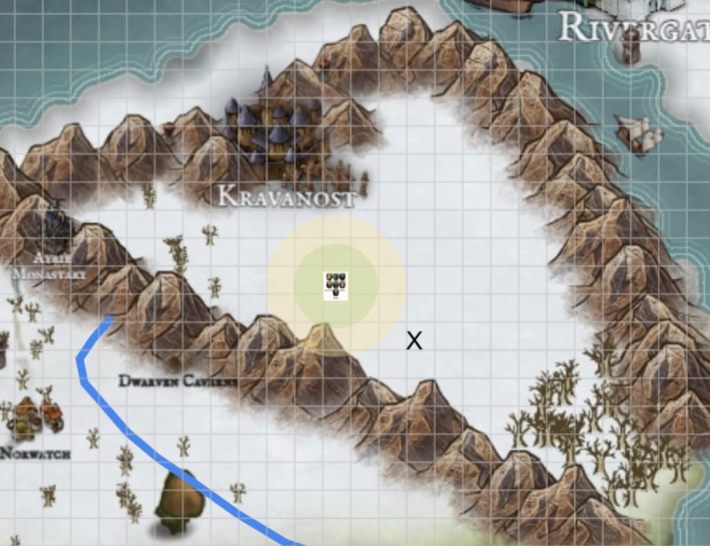 You traveled through the Dwarven 'mines' that turned out to be an ancient and unfinished burial chamber invaded by deadly Ankhegs, and through the tunnels under the deadly frozen mountains to the winter shrouded valley of Kravanost, (Named for the long abandoned fortress that had once perotected the north.) With only the minor inconvenience of the lair of a Cave Sovereign to navigate through.