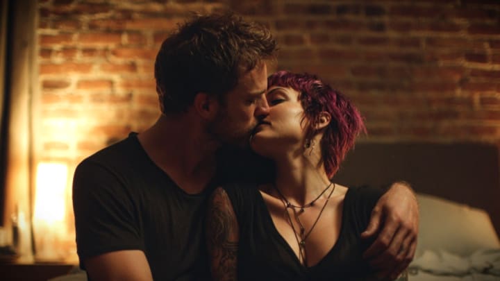 Then something shifted. The kiss deepened, and suddenly Shelly was standing, pressing against him, her fingers tangling in his hair. Michael's arms wrapped around her waist, drawing her closer as years of unspoken tension dissolved into heat and need.