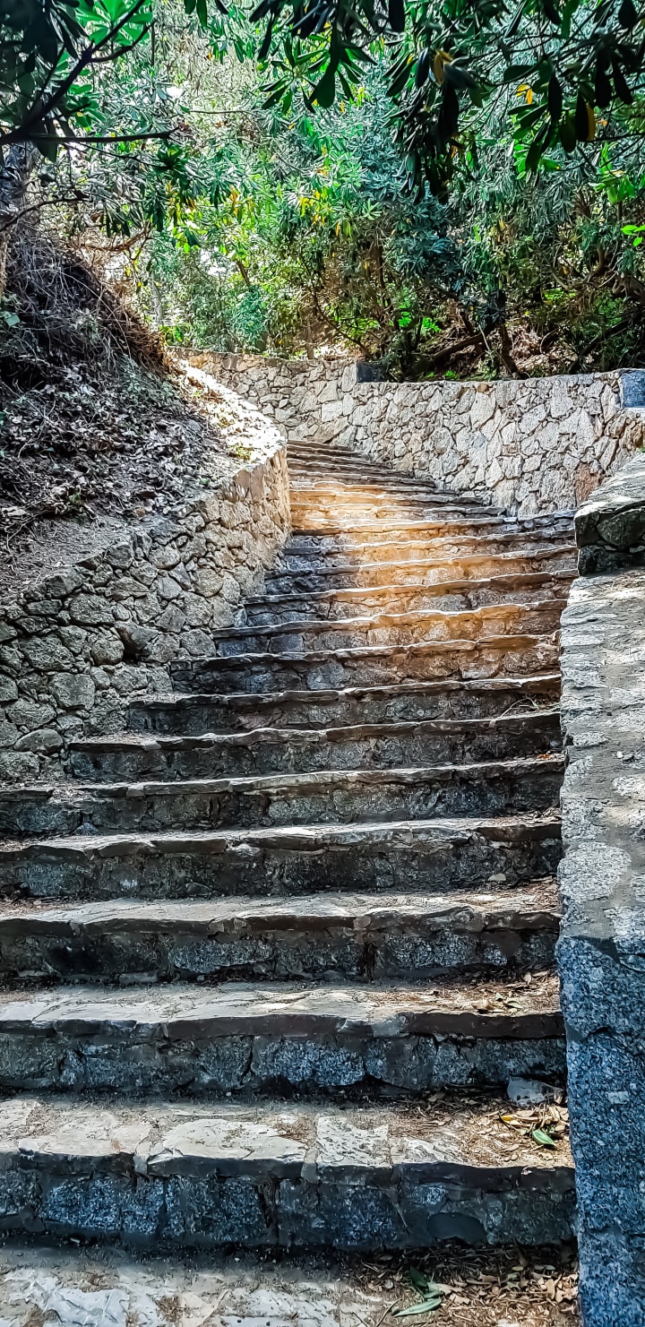 Jordan walks closer to the huge rock noticing how much work it must have taken to not carve but chisel each step into it. A dash of wildflowers and grandpa tiger lilies follow along side the staircase close to the side the house. Tall maple and oak trees sit off in the distance giving shade part ways down the stairs. She comes to the end of stairs meeting with a long driveway. To the left of the driveway is a set of three stairs chiseled out of yet another large rock, leaving top of rock as a makeshift landing. Jordan makes her way over to see why someone would have made stairs in the middle of nowhere. Once walking up the stairs and standing on the landing she finds the perfect clothesline attached between two trees.