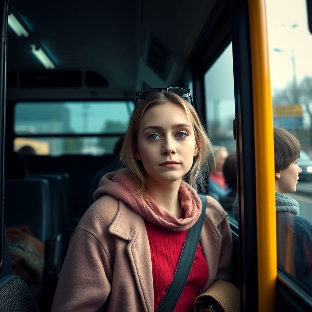 She boarded the Everybus Line at the corner of Rank and File. She chose the only remaining seat, next to a quirkily dressed middle-aged man.