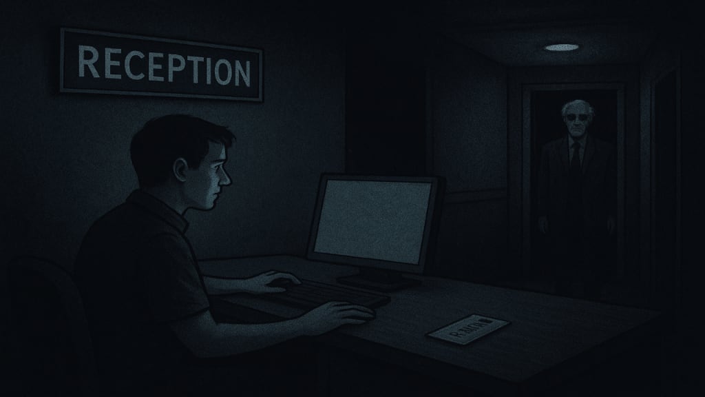 The lobby clock says 1:12 a.m. The elevator just started moving on its own. There’s a keycard sitting on the desk again — fresh, still warm from the dispenser.