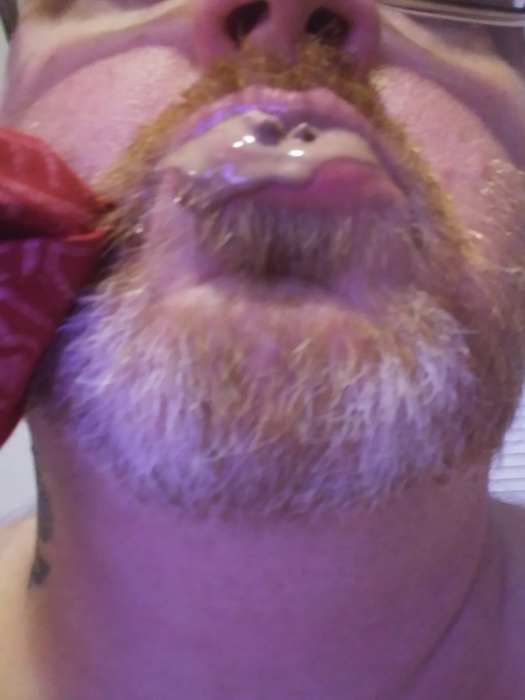 The man made a high-pitched noise in his throat that sounded like a prolonged “Aah!” Afterward, he smashed his face into the cake. Straightening up, he pawed at it with both hands. He grasped two handfuls of cake and smeared it all over his mouth and face. The man masticated wildly, making “nang, nang, nang” noises and coughing out bits of cake and frosting that clung to his bib and the hairs on his chest. He grabbed his cup of milk with the palms of his hands, arms outstretched so that he looked like a trained seal clapping its fins. He raised his glass to his lips and sucked on the lid of the sippy cup with loud slurping sounds. He moved his hands away from his mouth causing milk to drip from the cup, down his face, and onto his chest. When no more bits of cake were left, the man picked up the plate and licked it long and languorously. Finally, he patted his belly, smearing more thick frosting on his torso.