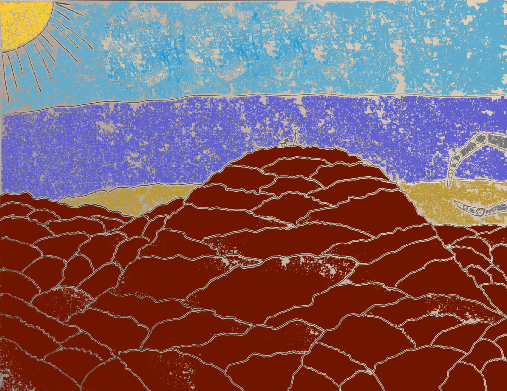 He was down by the water now. At the edge of the wharf was the mountainous hump of recyclables. The past’s environmental irresponsibility and militant greed had left a large portion of the Earth uninhabited, but technology finally caught up. Here was where humanity's extravagance was made sustainable. This was one of Deerhorn’s favorite places to go. He felt like the hump did. Obsolete, algorithmically unattractive, and deeper than most of the other piles of garbage in the vicinity that he’d come to know.