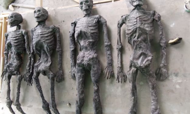 After Wang Zuo and Wang Guofeng left, the seven of us continued forward for another ten minutes. We encountered more and more headless mummies, at first just a few scattered ones, but eventually, they knelt in two rows along both sides of the wall. Even though a few of us had seen some things in our lives, we couldn't withstand such a spectacle.