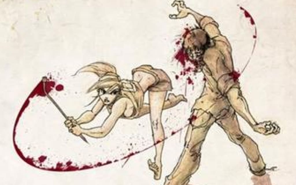 Immediately following that was a scream. The two corpses, who had been sitting quietly on the ground, suddenly became active. One of them lunged at Mott, and the other mounted him from behind. Their limbs coiled around him like vines.