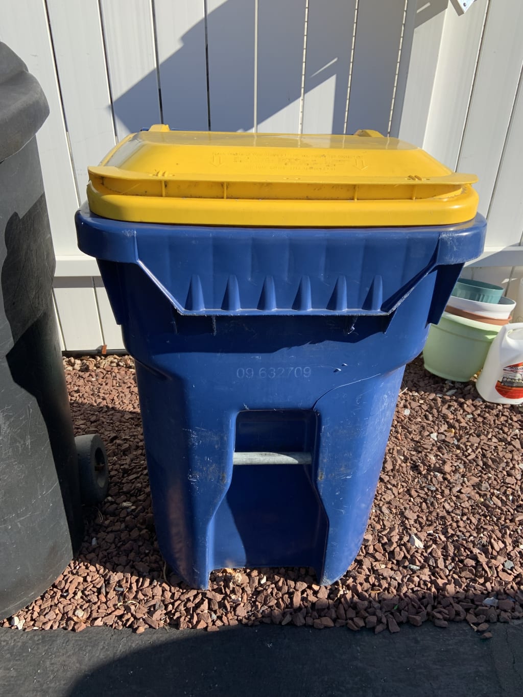 Yesterday, we found an empty pesticide plastic bottle in one of our recycle cans. This isn't allowed in any shape, fashion or form, even if it is rinsed out. It still may have some residue in it, and for recycling purposes, that is a "NO-No".
