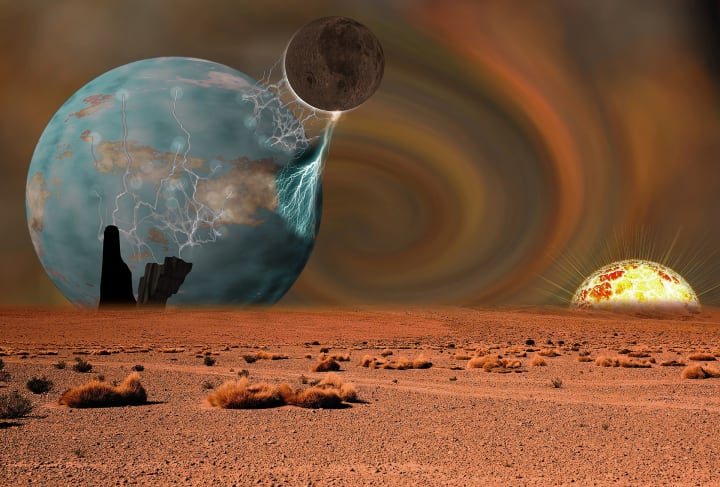 “In short, we’re walking,” Dylan replied pleasantly, standing up. The four of them looked out upon the road ahead, which was a seemingly endless prairie of reddish-brown dust dotted with mangled ungainly mountains and boulders that glowed like giant coals. D’Carthage strode to the front of the group, a huge sparkling smile spreading quickly across his bronzed face.
