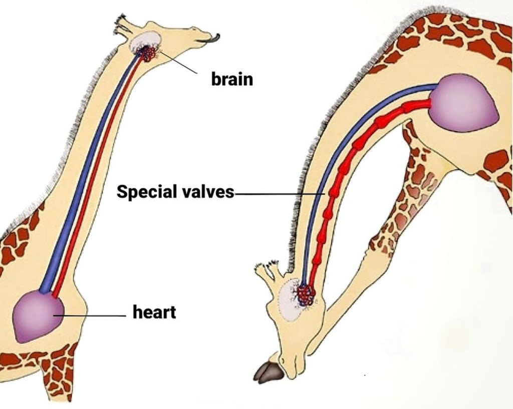 To do this, giraffes have a powerful heart, thick walls to their arteries and special valves that stop the blood from flowing in the wrong direction, enabling them to deal with the difficulties of gravity.