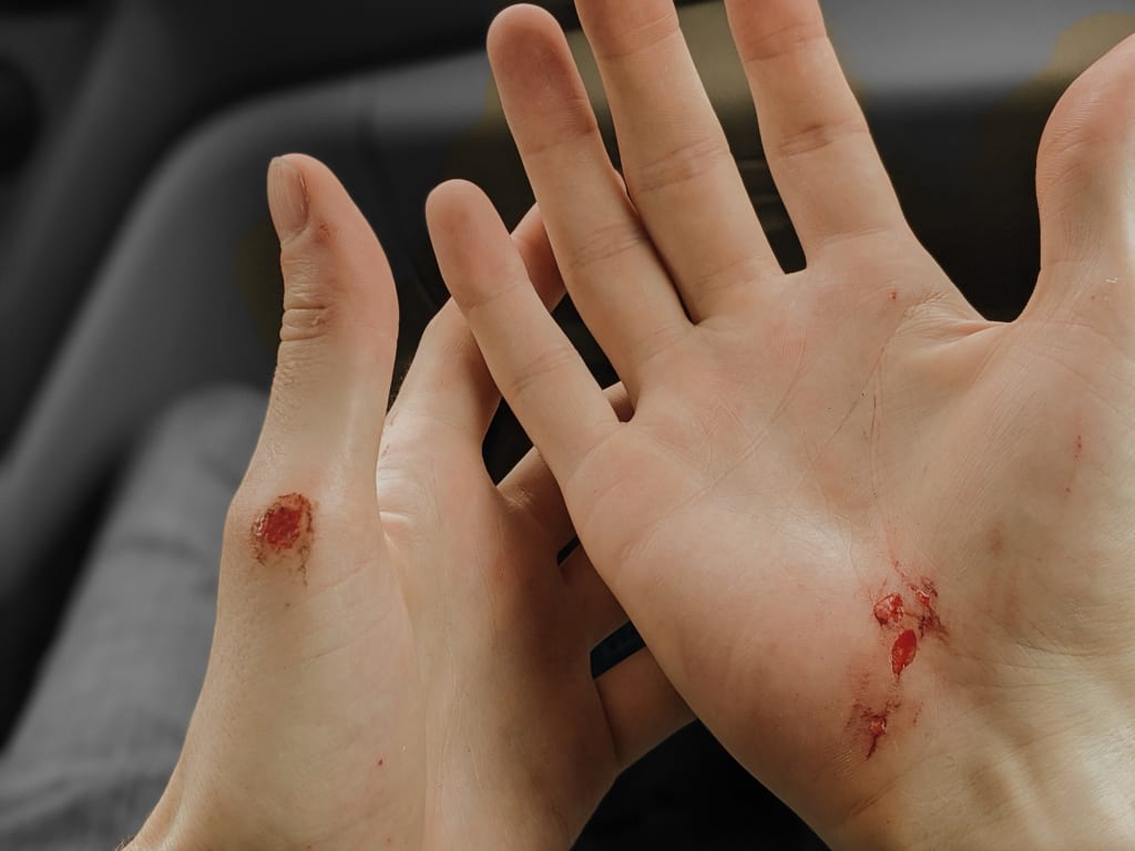 "The scratch on your left hand, between the joints on your ring finger." Eldridge said. He paused to let Cramer look down and notice the scratch. "What is that from?". He asked.