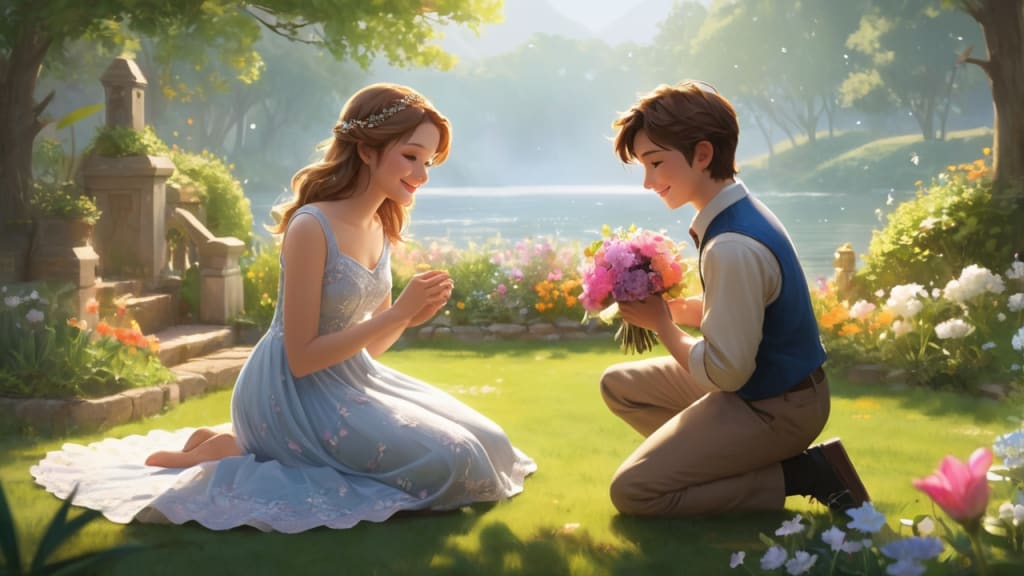 A Romantic Moment in a Serene Garden: A Boy's Emotional Proposal to the Love of His Life