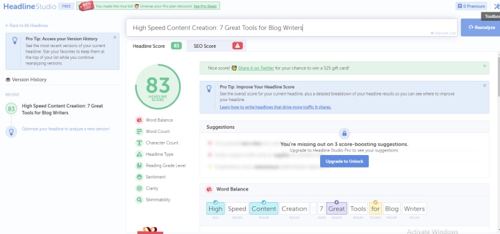 With this tool, all you need to do is enter the headline of your seat, and then it will give you feedback on its structure, grammar, length, tone, keyword balance, and more so that you can come up with an eye-catching title for your blog post.
