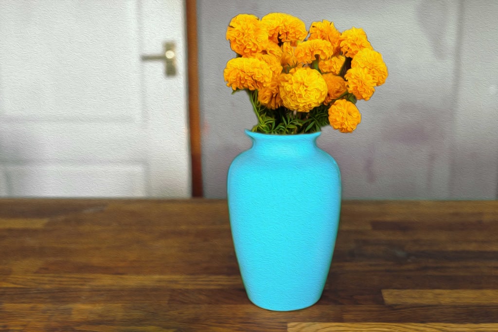 Martha sat frozen for a few minutes before she sluggishly lowered her gaze to the ground. Blue shards of porcelain lay scattered across the floor. The water had already soaked into the wood. A beam of light from the window illuminated the handful of freshly picked flowers that had come to rest at the foot of the wall. Marigolds from the garden. She picked one up, examining its every petal, remembering.