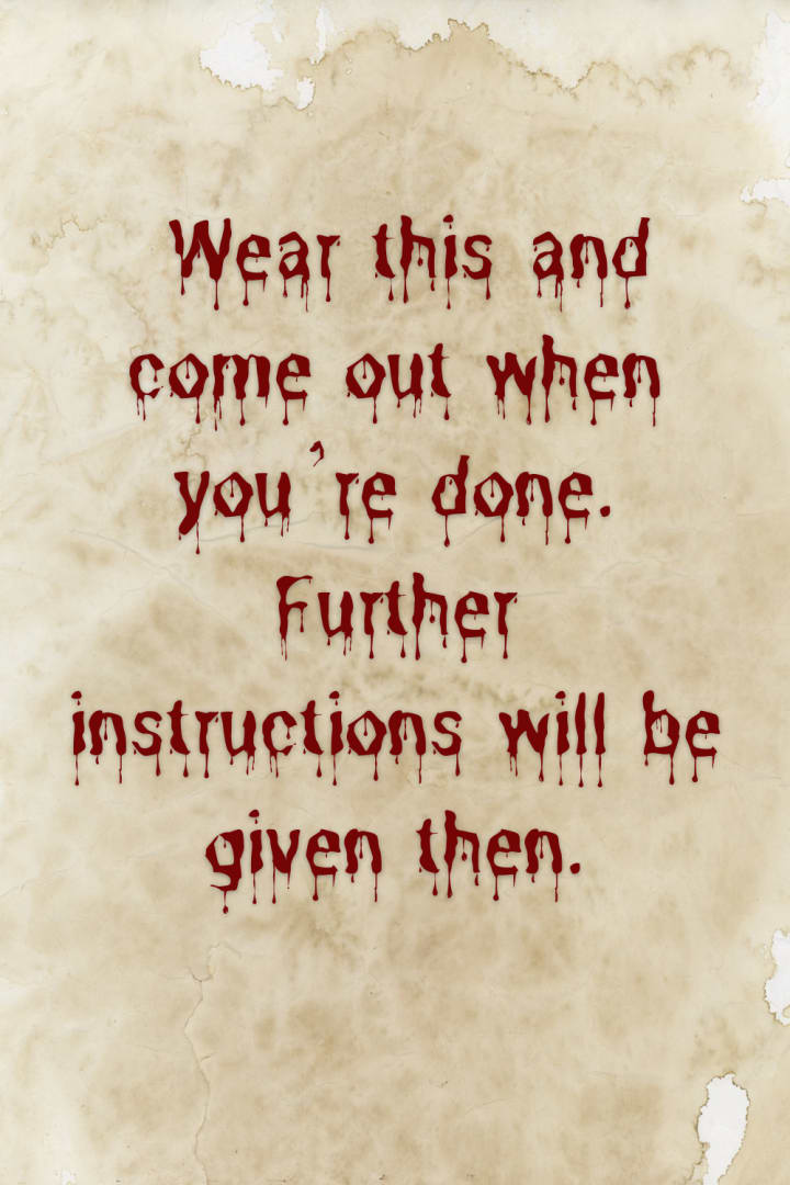 Eliza rose as she loudly gasped for air. Her hands gripped the sides of the tub as she heaved. Her dark hair stuck to her face, and the air’s chill made her shiver. Once she was calm enough, she looked around and saw that she was still in her bathroom. The only difference was that there were new clothes folded on the chair with a note on top written in blood:
