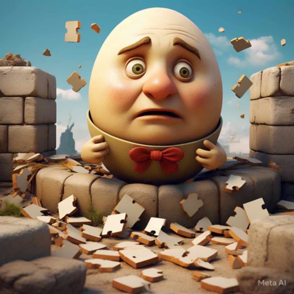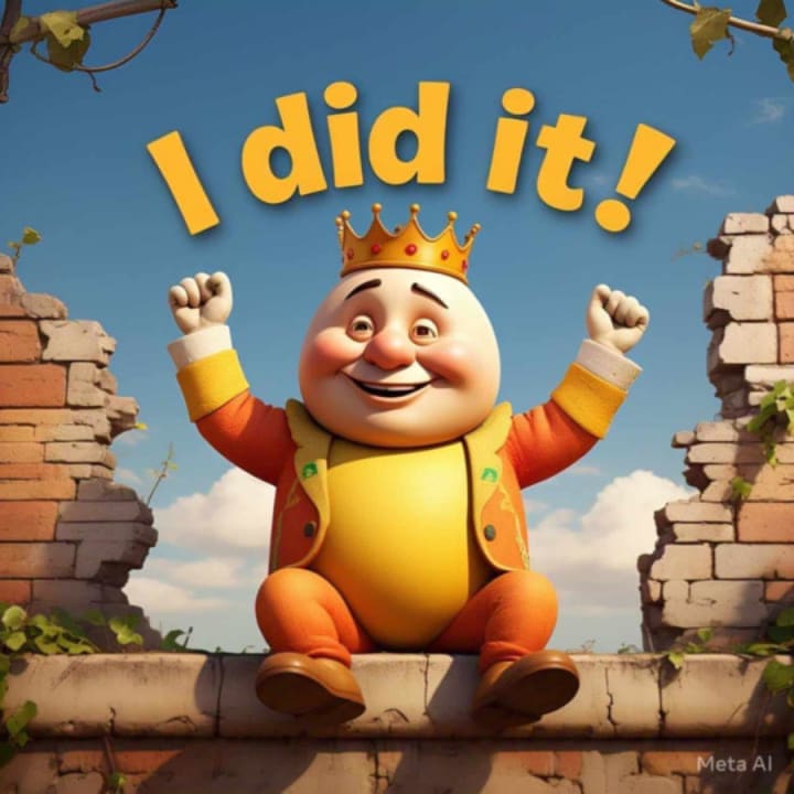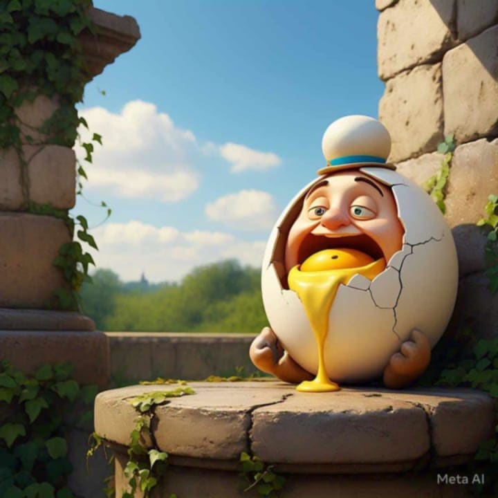Humpty: It's not feasible. Jill and Jack enjoy falling down slopes. I will undoubtedly die like my father and crack entirely.
