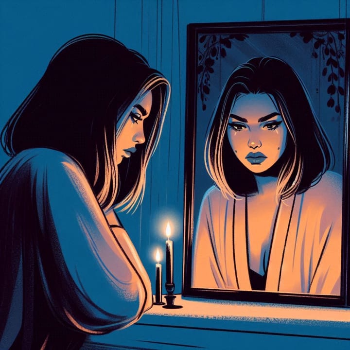 Over the next few days, I found myself returning to the mirror more often — not to check my face or hair, but to listen. Sometimes it was quiet. Sometimes it asked questions. And sometimes, it just stared.