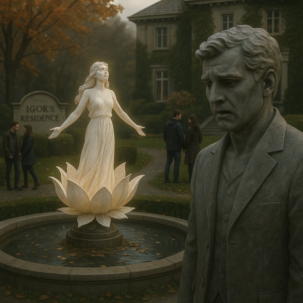 Igor was completely immobilized in one place, still unable to move. He was in such shock that he was too exhausted to be angry with her. He knew that he had forced her to act like someone she wasn't for too long, depriving her of all the freedom that true love gives, and seeing her now in full power turned him to stone. Just as Mona had felt throughout their relationship, Igor now stood like a stone with his jaw open in front of his residence, and that sculpture remains there to this day.