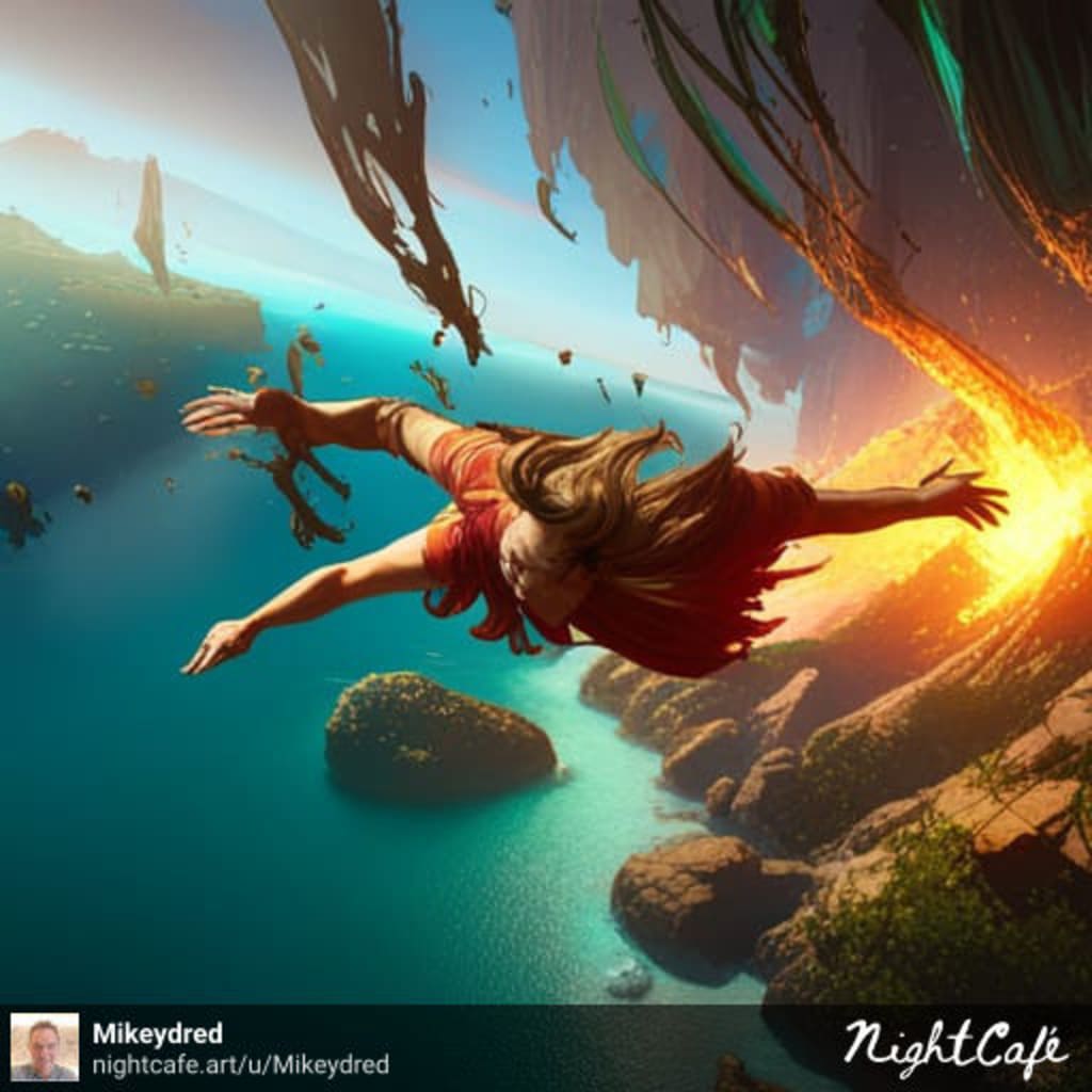 He shouldn't have but now he had and he was in flight, flying, like a bird, although in one direction, and that direction was down.