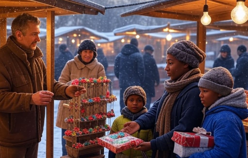 Later, as she watched a young boy excitedly present his mother with a hand-painted ornament he’d bartered for, Aisha felt a lump in her throat. This wasn’t the Christmas she’d grown up resenting. This was something real, something alive.