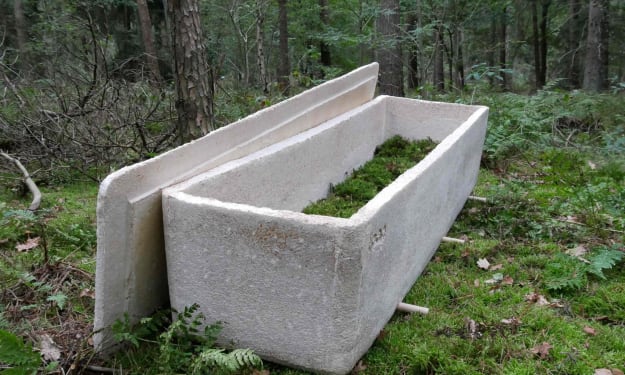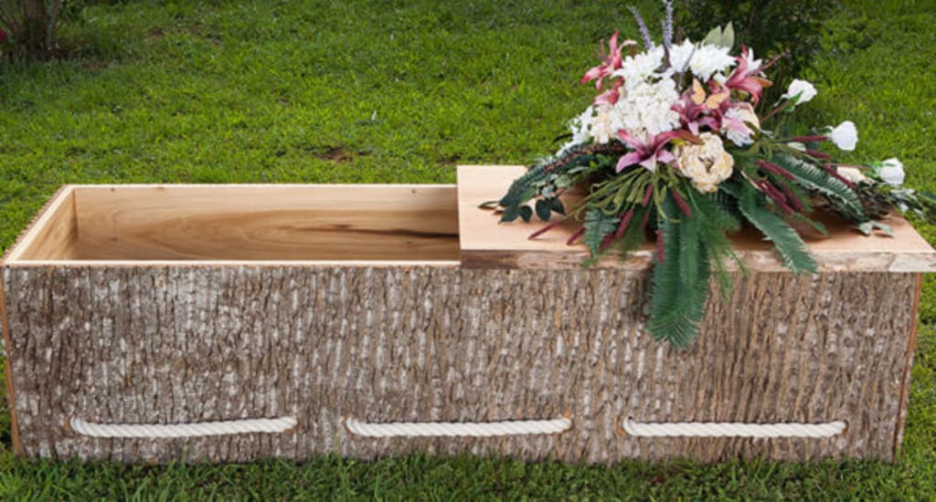 Crystal walked into the dark funeral homes back door, disarmed the alarm, and made her way towards the front, turning on lights as she went. flipping the switch for the showroom, she noticed a little old lady laying peacefully in a rose colored casket.