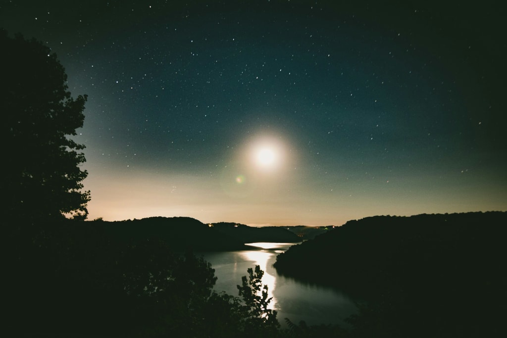 Crystal in the moonlight forms as ripples cascade from the center of the clear lake where I submerge myself, my hair glistening with the reflection of stars. The water is cool and quaint, and the air silent other than the crickets' conversations in the bushes. You watch me as I disappear, and giggle as I splash my feet to make the water dance along with me. Your eyes reflect me with a love and care that I can't see through my own. It’s gentle in the water here. You join me and we circle around, gliding across each other's forms, creating thin, clear trails of crystal in the moonlight.