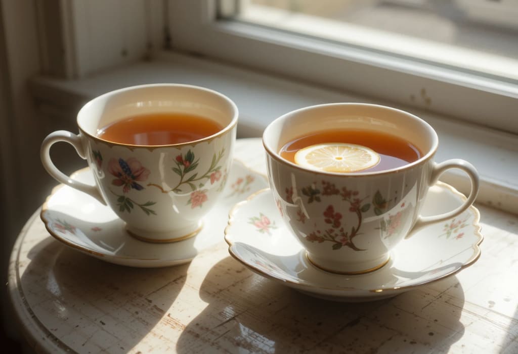 Her kitchen smelled like citrus and cinnamon. There was a cat I never saw but always heard—rustling behind cupboard doors or thudding up the stairs like it wore boots. She poured tea into two mismatched cups. Mine had a chip on the handle. The saucer was from a completely different set. She placed a lemon wedge on the rim and slid the cup toward me.