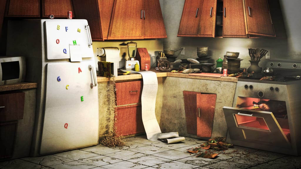 He backs himself up onto cabinets and the slice is out of sight. His heart begins to race. The flour jar from the counter above slowly creeps to the edge. He peers up and the jar smashes into the bridge of his nose. He’s completely covered in flour and the pitter patter of small footsteps carry around the counter. He jumps up in search of protection. He reaches into the drawer that he pulled the fork from and grabs a potato masher. He turns around with the masher as his sword. The slice of cake has taken up arms as well with forks and butter knives. On opposite sides of the kitchen they are at a classic standoff from a western. Marlon lets out a guttural yell as he leaps forward to swing at the cake. It leaps out of contact and Marlon’s momentum sends him into a spin. The slice runs across the counter and Marlon tries again to charge it. He runs as fast as he can muster and the cake throws open a cabinet door and it connects with his face. It follows up by front-flipping over him, jabbing him with a fork. Marlon howls in pain and the cake takes off down the hallway.