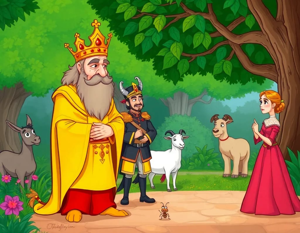 The next day when the king was going to the same garden with his followers, he saw a donkey and a goat talking on the way. On reaching closer, the king heard that the goat was saying to the donkey, Donkey You are a fool But today I came to know that this king is a bigger fool than you. The king was very surprised by the goats words. He asked the goat that why does she consider him a big fool The goat said to the king, O King Today you are happily sacrificing your life to make your queen happy. But when that queen will become the owner of all your wealth after your death and will enjoy life with someone else, will you still be happy