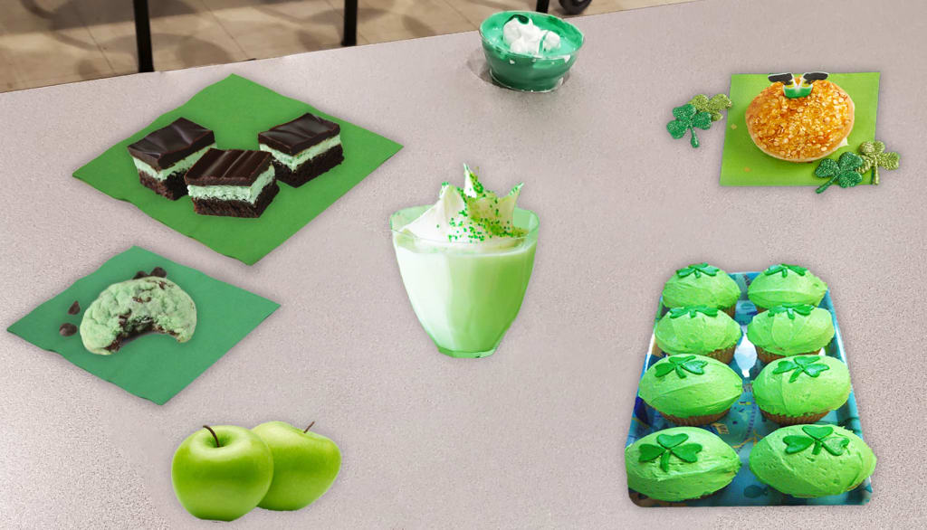 They placed their creation onto another table gently, being mindful of presentation. Said cake seemed to consist mostly of shaving cream dyed a vibrant green. It was certainly festive in leprechaun’s associated color. Tamara and Maisy had certainly worked hard—that much was obvious—with lots of care put into the crafting of the “cake.” The duo shared a look.