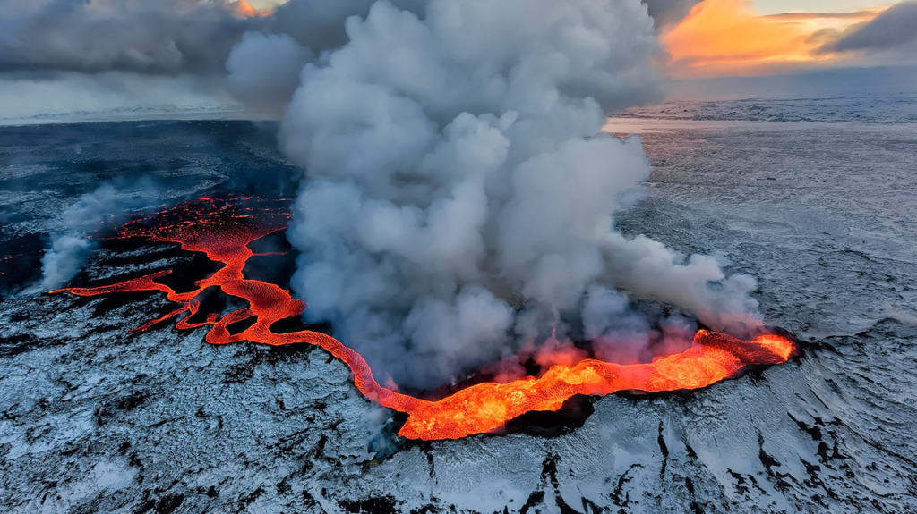 Suddenly lava began to spew out from the cracks, the bright orange red glow lights up the dark dread. Setting fire to the land, burning off the wraiths of the past. The frost and the fire collide, hissing and sputtering aloud. Steam rises as a voice echoed through her ears, "Find the one who walks on the fence of human and fae. There you will find healing with him."